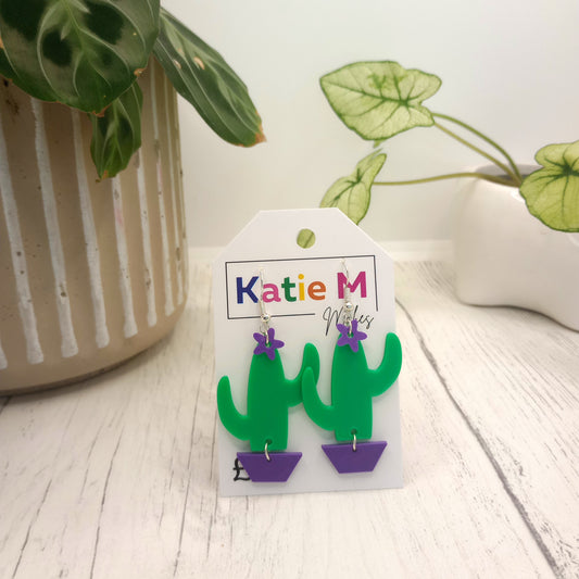 3D Printed Smiley Cactus Earrings