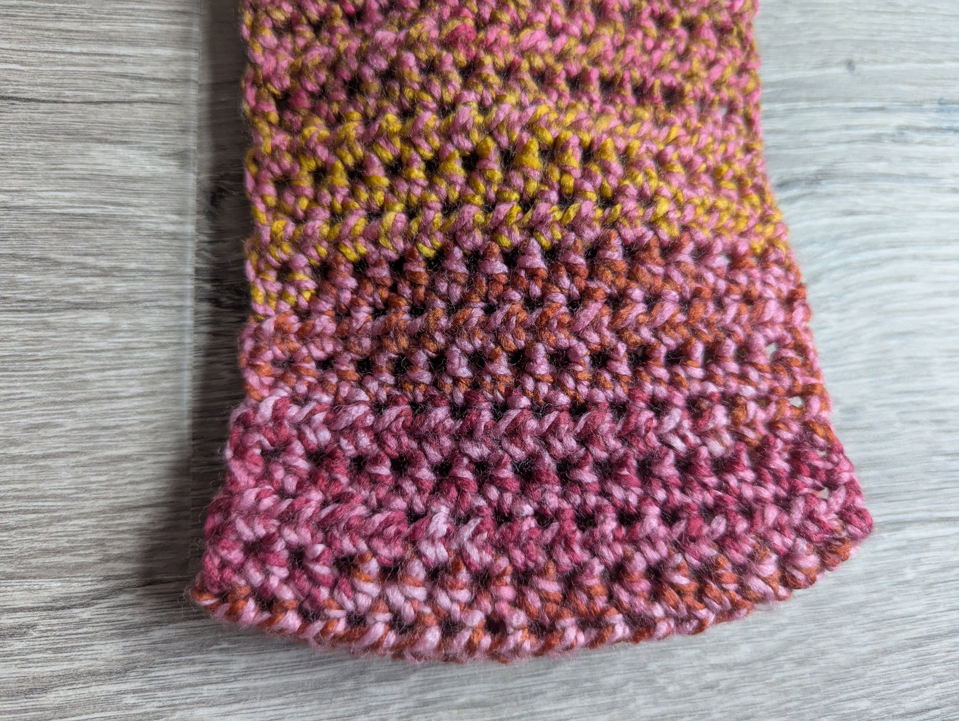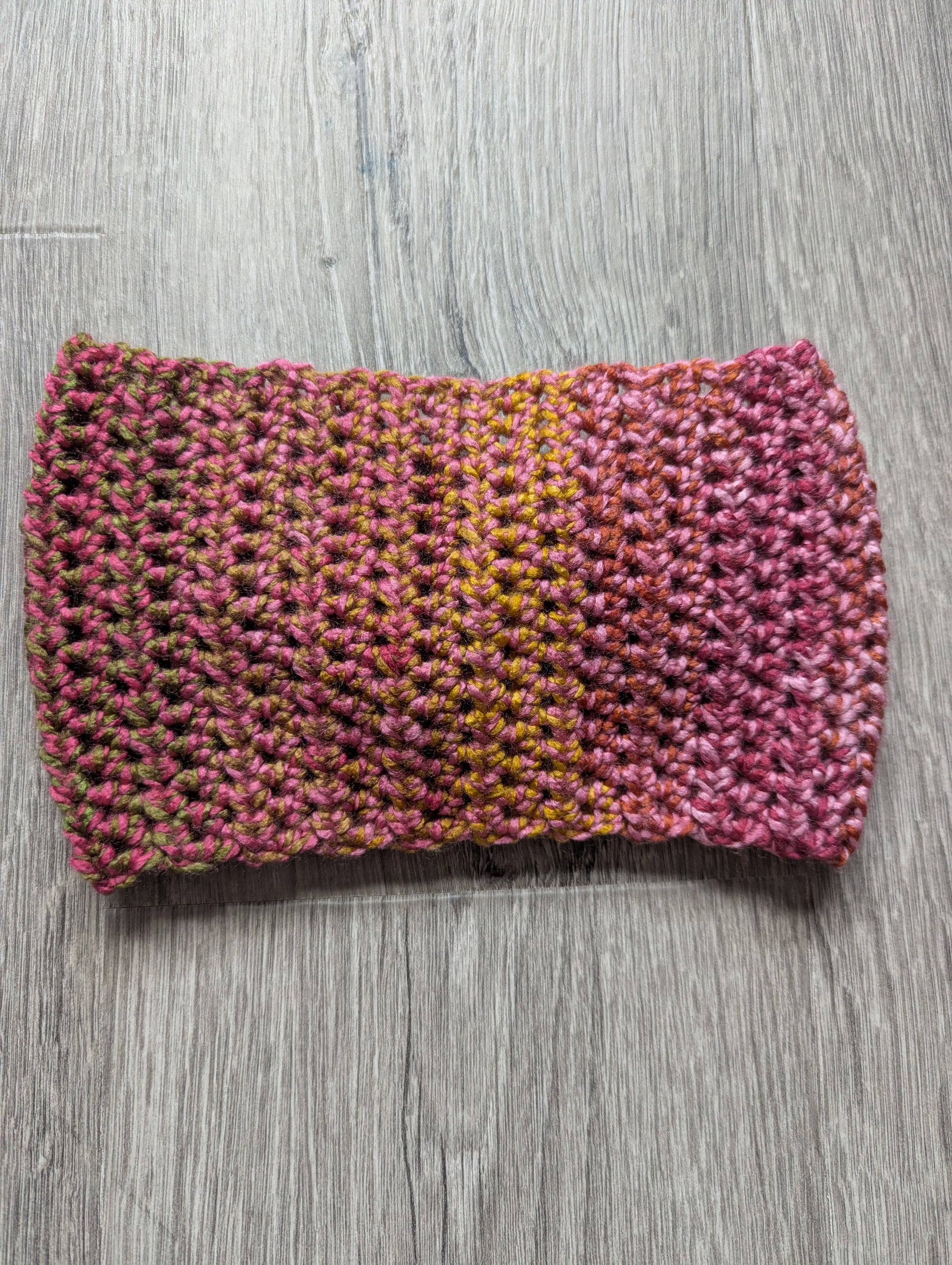 A crocheted twisted headband – the ultimate winter accessory for anyone looking for both warmth and style. Made from a soft and luxurious acrylic yarn, this headband is perfect for any adult seeking a cozy yet fashionable look. Fading through autumnal colours it’s a great addition to any outfit.